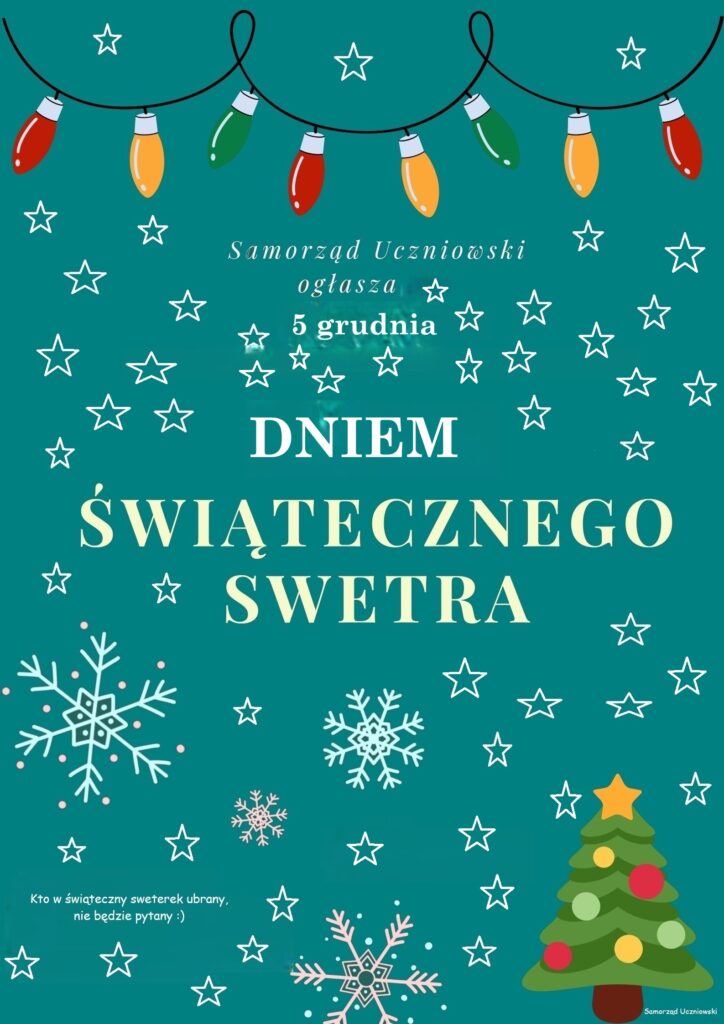 Załóż swój ulubiony świąteczny sweterek i dołącz do wspólnego tworzenia magicznej atmosfery w naszej szkole!