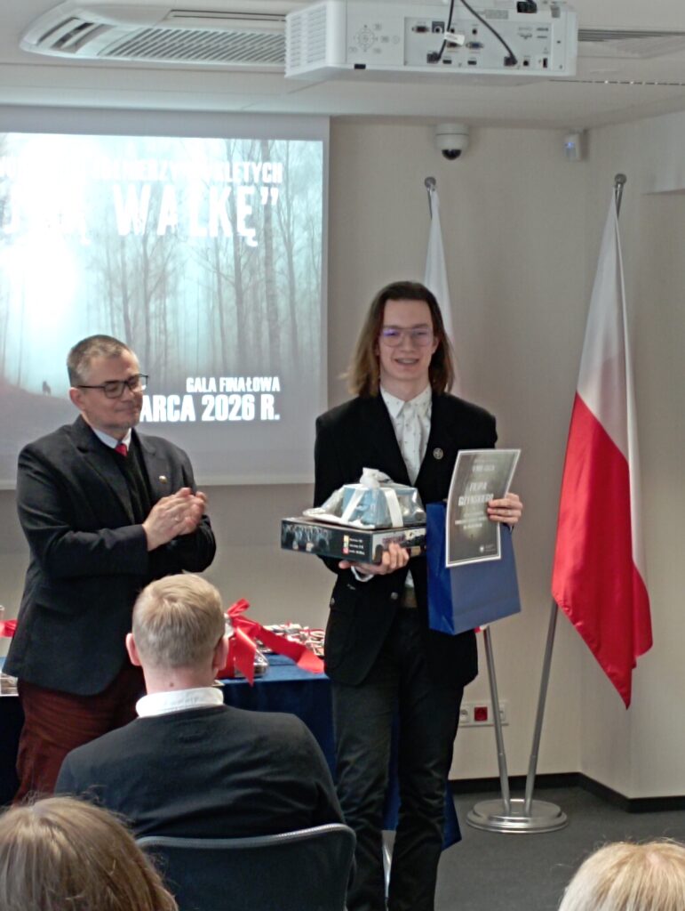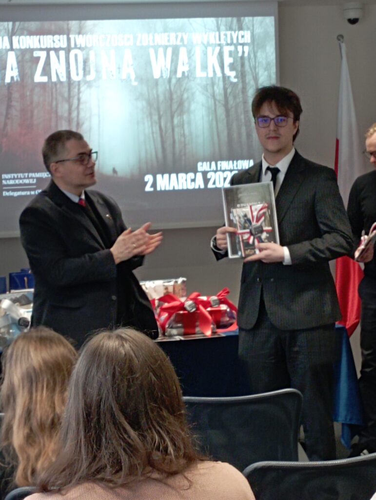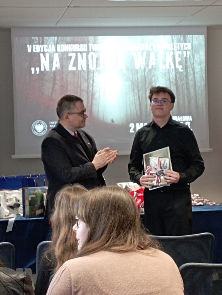 Z okazji Narodowego Dnia Pamięci Żołnierzy Wyklętych, obchodzonego 1 marca, uczniowie ZSEiT – Filip z klasy 3 TP oraz Szymon z klasy 4 OZE – wzięli udział w konkursie recytatorskim pt. „Na znojną walkę”, zorganizowanym przez Instytut Pamięci Narodowej – Delegaturę w Olsztyn.